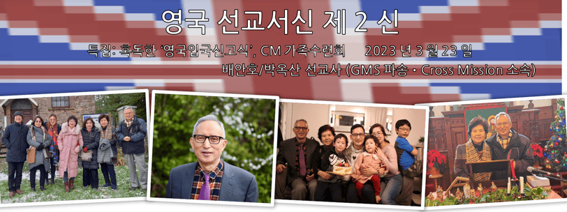 지난 10월 중순, 母國(모국)에서 정식 선교사비자(3년)받아 출국하면서 첫번째 영국선교서신을 쓴 후 5개월만에 제2신을 씁니다. 영국의 겨울은 11월-3월까지 유난히 길게 느껴집니다. 2023년 겨울은 폭설과 2-3차례 30년 만의 강추위. 노약자들에게 더 가혹합니다. 오랜만에 쓰는 제2신 선교서신에는 크로스미션 가족 수련회. Luton의 St. Hugh church에 이어서, 런던 Watford, Bushey Baptist church 에서도 시작 된 새벽기도 소식. 새해 劈頭(벽두,1월 8일) 저희의 첫번째 선교지, 탄자니아 동료선교사의 연 이은 별세소식과 지난해 11월 중순이후 배안호 선교사의 호된 ‘영국입국신고식’을 담았습니다.
